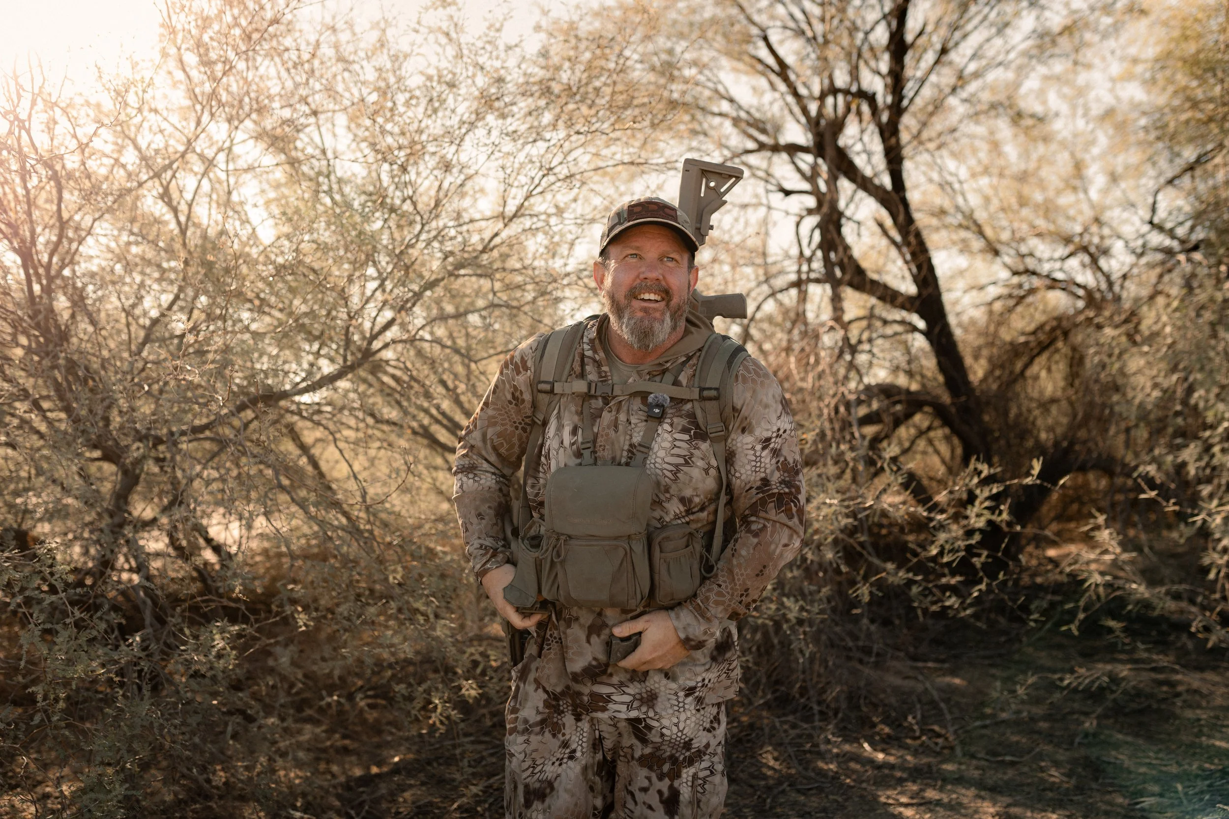 We recommend a variety of calibers depending on the environment. For AZ and closer-range hunts, 22 Nosler, .223 or .22-250 work well. It’s important to choose a rifle that you’re comfortable with and can handle efficiently.